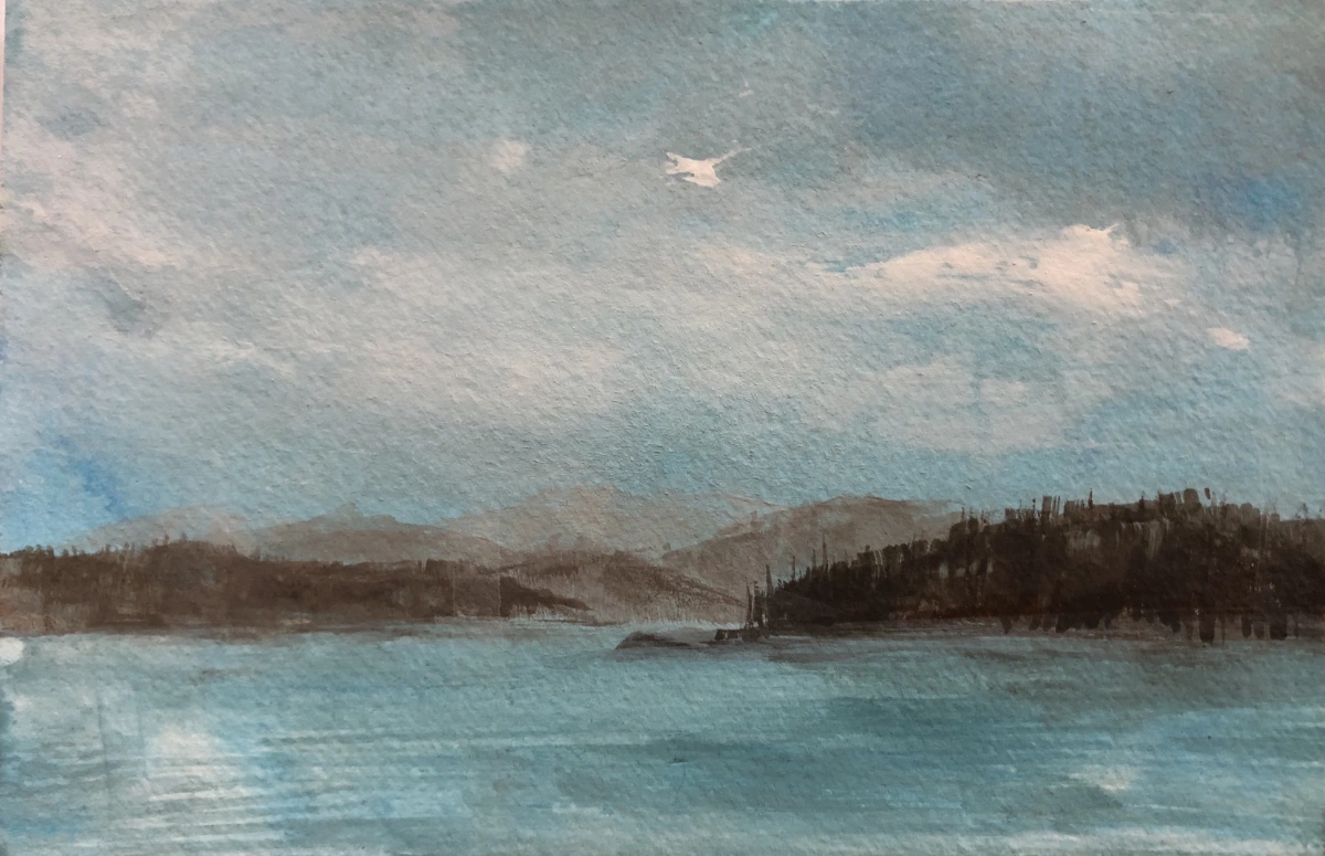 acrylic on wood panel, 2025, 11.5×26.5” framed